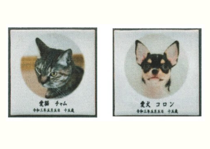 生前の面影をタイルに写し、墓石にはめ込みます。